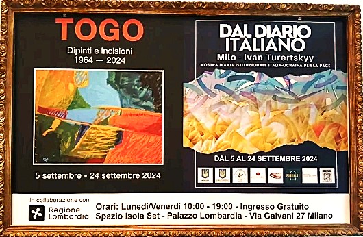 Lo “Spazio IsolaSET” di “Palazzo Lombardia” a Milano ospita due importanti mostre d’arte contemporanea dal 5 al 24 settembre, con opere di maestri di fama internazionale. La mostra “Dal diario italiano” vede protagonisti gli artisti Ivan Turetskyy e Milo Lombardo, uniti dal tema della pace espressa attraverso pittura e scultura. Parallelamente, la mostra “Togo, dipinti e incisioni 1964-2024” celebra la carriera di Enzo Migneco, meglio conosciuto come Togo. Attivo dal 1956, l’artista milanese pittore e incisore ama esprimersi attraverso cromie mediterranee e geometrie astratte in una sorta di neocubismo contemporaneo.  Attivo da oltre 60 anni, l’artista è citato tra gli artisti presenti nel CAM.