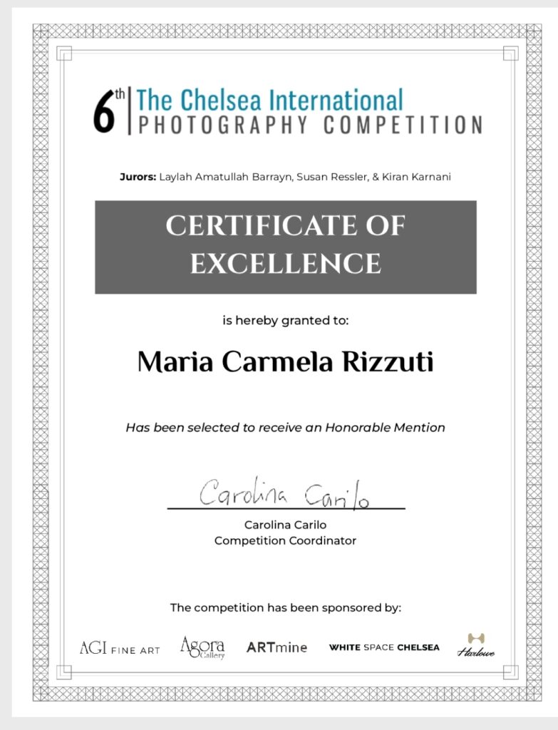 Carmela Rizzuti premiata con la “Honorable Mention” dalla “New York Art Competitions” per il “6° Chelsea International Photography Competition” 2024