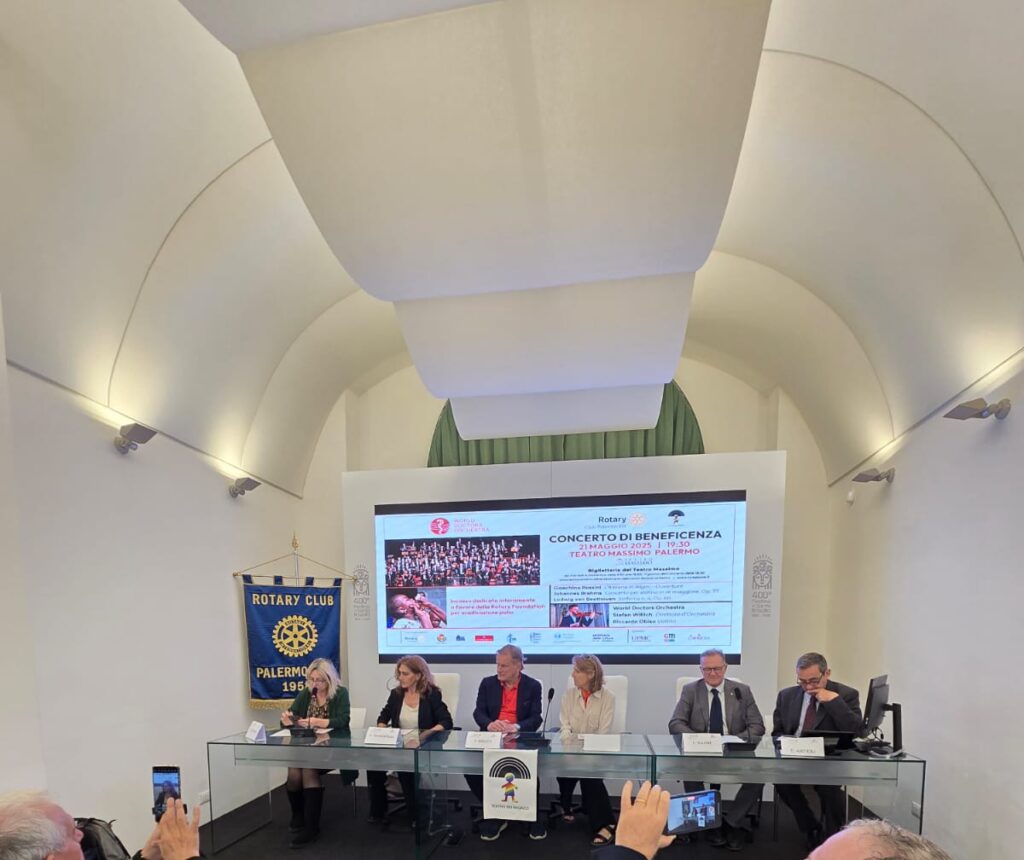 «Posso solo dire di essere felice di rappresentare un teatro sempre più al centro della città – ha sottolineato Ettore Artioli, direttore esecutivo della Fondazione Teatro Massimo -. Parlo di centro riferendomi alle tante attività di cui questa città si giova e di cui può giovarsi grazie anche a un punto di incontro, mi permetto di dire, eccellente come è naturalmente il Teatro Massimo di Palermo. Ecco perché c’è sempre la nostra massima disponibilità, compatibilmente con quelli che sono i tempi è la complessità della gestione di una macchina complicata costruita oltre 150 anni fa. Per noi è un onore ospitare un’iniziativa del genere, sperando che sia l’ultima per la quale si chiede un contributo del pubblico. Vorrebbe dire che la poliomelite è stata debellata. Per la nostra città è un grande onore ospitare un’orchestra internazionale con numeri così alti, ho letto 2.000 medici che fanno parte di questo circuito che, di volta in volta, si riuniscono in diverse parti del mondo con obiettivi specifici. Abbiamo l’occasione di dimostrare che Palermo sa accogliere in maniera assolutamente adeguata in quanto è una città bella, anche perchè tanto generosa».