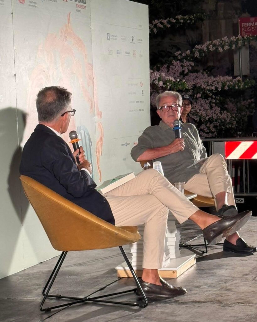 E se con Concita De Gregorio sono state le ‘generazioni a confronto’ il motivo della serata, l’America trumpiana ma anche la strage di Gaza, gli equilibri nel e del Mondo e quell’America sempre meno protettore e sempre più fagocitante e arrogante, sono stati gli argomenti di sabato 5 luglio, sempre nell’atrio di Palazzo San Domenico, davanti ad un uditorio tanto folto quanto attento, nel dialogo tra il professore Paolo Magri e la giornalista RAI Monica Maggioni tenendo ora sullo sfondo ora in primo piano ‘The Presidents’ (RAI libri) e ‘Spettri’ (Longanesi) i due libri della giornalista, ex direttore del Tg1, voce e volto di ‘In mezz’ora’. Riflessioni insieme tra lei e il docente di Relazioni Internazionali della Bocconi, spesso interrotte dagli applausi nella piena consapevolezza di un mondo in precario equilibrio che rischia di farsi male da un giorno all’altro se questo equilibrio non si assesta e se c’è chi come Trump e i suoi legami più o e i suoi interessi continuano a colpirlo