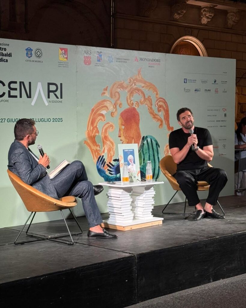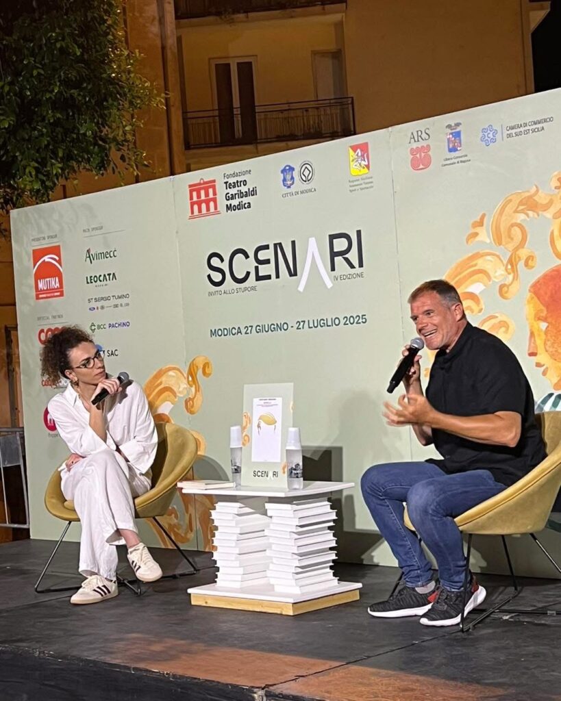 MODICA – “L’unico problema di Scenari 2025 è… che si sta finendo! Scherzi a parte, anche la penultima settimana è stata un florilegio di emozioni, parole straordinarie, pensieri, riflessioni, incontri, scambi, condivisione. Io non finirò mai di ringraziare abbastanza le migliaia di persone che ci vengono a trovare, che vogliono trascorrere le loro serate con noi, che vivono con noi le stesse, intense emozioni che noi viviamo. La loro gioia ad ogni fine serata, la gioia negli occhi di chi c’è, il loro passaparola è il premio più bello per il nostro sforzo. E lo voglio condividere con Andrea, Marco, Giuseppe, Roberta, Valentina, Elvira, lo straordinario team di Mondadori BookStore Modica che vive con me queste settimane così intense e così belle”. Piera Ficili, anima e direttrice artistica di Scenari 2025, continua a lavorare di ottima lena e incamera le belle parole e gli applausi convinti tutti per lei ad ogni serata. Dopo altri tre intensi momenti vissuti da venerdì 18 a domenica 20 luglio e aperti con Alberto Matano, il suo Vitamia (Mondadori) e il tanto detto su di se, venerdì scorso, sulla scalinata di San Pietro. Un muro di folla ad accoglierlo, applaudirlo e vivere con lui la bellezza del momento. Un’ora di racconto di un libro e di parte di una vita di un volto che è familiare per la sua forza empatica. Il direttore di RagusaOggi, Enzo Scarso, che lo ha intervistato, ne ha tratto in modo nitido aspetti personali e professionali, racconti di vita, che hanno scontornato Matano e il suo pensiero.