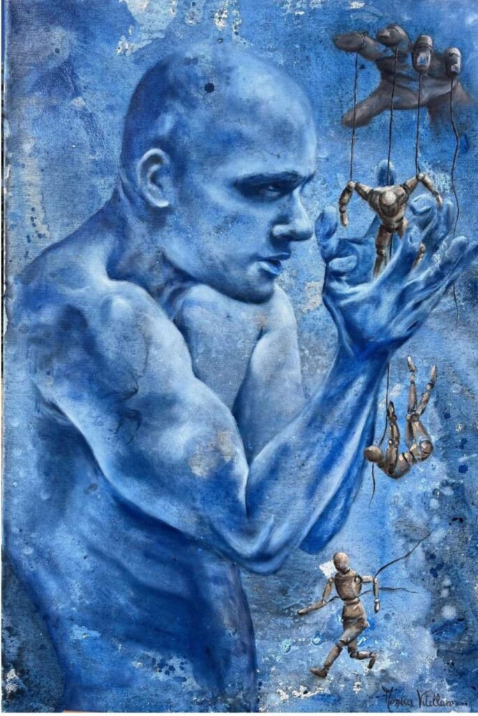 “L’artista – sottolinea Sabrina Di Gesaro – dimostra una notevole padronanza tecnica: la capacità di disegnare con rigore un’anatomia morfologica e di coniugarla al linguaggio cromatico conferisce forza e immediatezza visiva al concetto di manipolazione”.