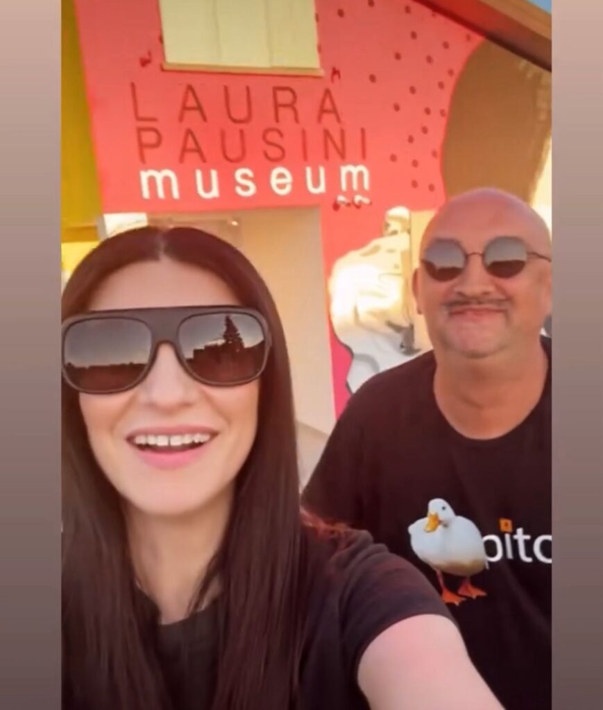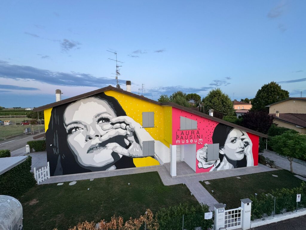 Ce ne sono stati tanti, carissima Ilaria, ma uno in particolare resterà con me per sempre. Ero completamente immerso nel lavoro, sporco di pittura, le mani colorate, il muro ancora fresco, quando ad un certo punto ho sentito qualcuno. Fuori all’ingresso del museo dove c’è l’opera vi era Lei in tutto il suo splendore. Mi sono girato, e l’ho vista… La dolce Laura, in tenuta sportiva, capelli raccolti in una coda, occhiali da sole… Senza scenografia, senza riflettori, solo lei. Aveva negli occhi un’emozione rara, quella di una bambina che guarda la propria vita materializzarsi davanti. Ci siamo abbracciati, ed è stato un gesto semplice, vero, ma carico di tutta la potenza emotiva di quel momento. Un mix da montagna russa, tra risate, commozione e gratitudine.