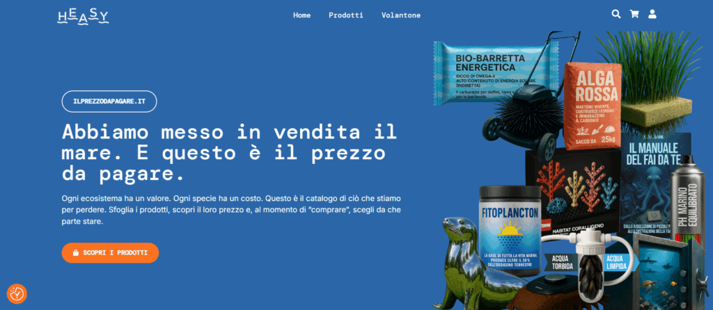 Andando su https://www.heasyproject.it/shop/ e cliccando su “Compra Ora” non si usano i soldi, ma si scopre il valore di ogni risorsa marina, le minacce che subisce e, soprattutto, le buone pratiche per diventare parte della soluzione.