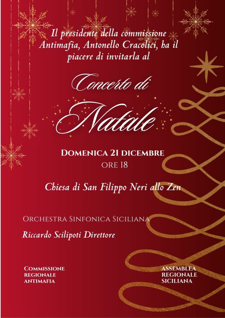 PALERMO – Domenica 21 dicembre, alle 18, nella parrocchia San Filippo Neri del quartiere Zen di Palermo, si terrà un concerto dell’Orchestra Sinfonica Siciliana, diretta da Riccardo Scilipoti. L’iniziativa, organizzata in collaborazione con la commissione regionale Antimafia, presieduta da Antonello Cracolici, e con il contributo dell’Assemblea regionale Siciliana, ha l’obiettivo di testimoniare la presenza anche culturale delle istituzioni in uno dei luoghi della città che più richiedono cura e partecipazione.