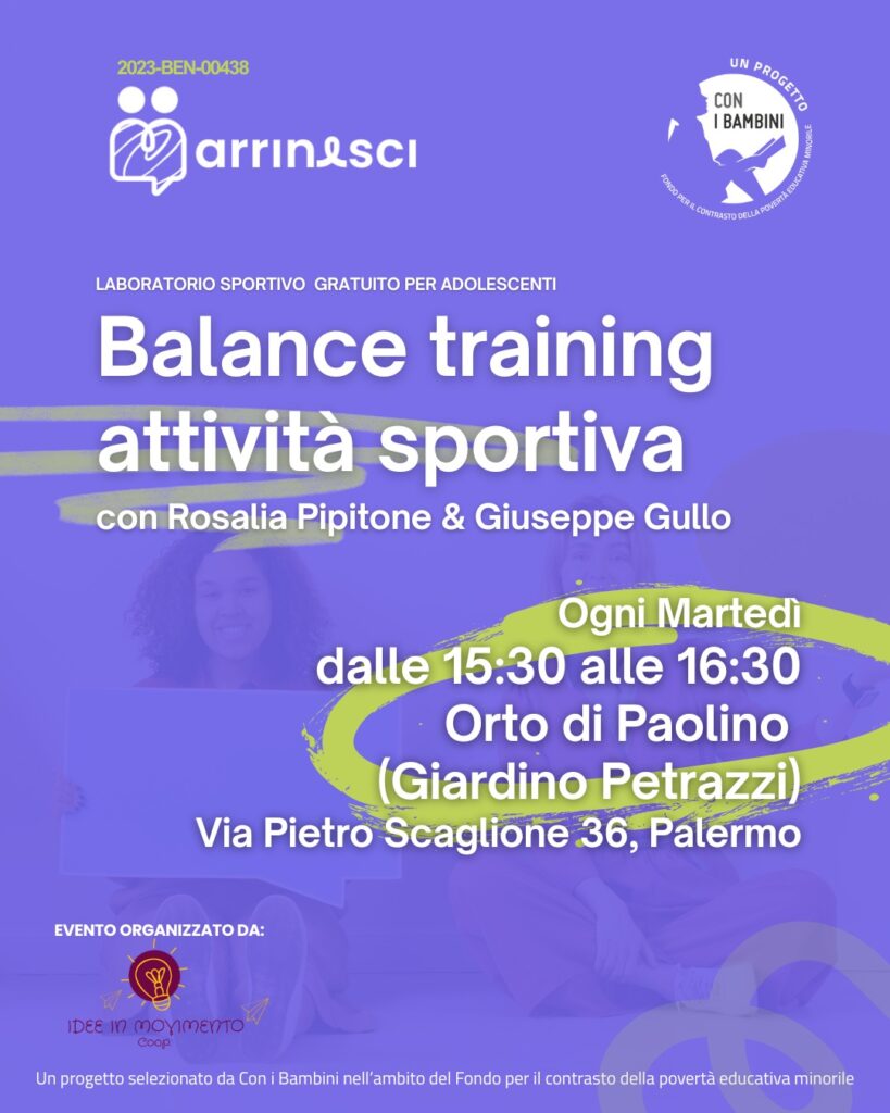 Parallelamente, il laboratorio di Balance Training, condotto da Rosalia Pipitone ogni martedì dalle 15:30 alle 16:30, propone un approccio allo sport come esperienza educativa e relazionale. Le attività motorie, i giochi di squadra e gli esercizi funzionali non hanno soltanto l’obiettivo di potenziare le capacità fisiche, ma anche di promuovere collaborazione, senso di appartenenza e benessere sociale. L’attenzione non è rivolta alla performance, bensì alla crescita personale, all’autostima e alla possibilità di sperimentarsi in un contesto dinamico, accogliente e motivante.
