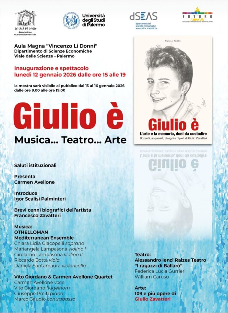 PALERMO – Sono trascorsi circa tre anni e mezzo da quanto non c’è più e manca come se fosse scomparso ieri, ma l’evento che si svolgerà lunedì 12 gennaio non vuole commemorare la memoria di Giulio Zavatteri in quanto giovane vittima della droga, scomparso per un gioco crudele del destino, ma vuole fare in modo che la memoria diventi occasione di riflessione pubblica e di impegno concreto contro una delle emergenze più drammatiche e silenziose del nostro tempo: la dipendenza da sostanze, soprattutto tra i più giovani, troppo spesso anche minori.