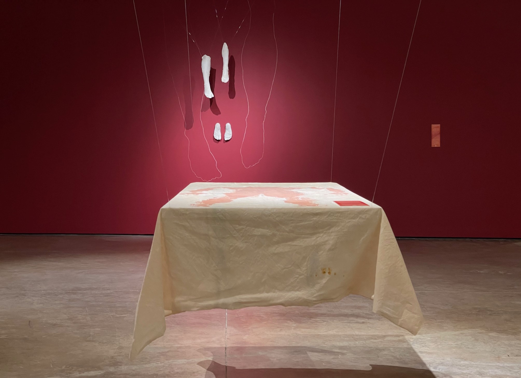 Nudo è il corpo di ognuno quando ormai perduta è l’individualità: quando l’abito è stato abitato e restano solo l’odore, il profumo, la memoria. Nuda è la pelle trasformata in gigantografia da un possibile e indiscreto capillaroscopio, nudo l’addome palpato e archiviato nei cassetti della diagnostica, nuda la carne tagliata ed esposta, nuda è la traccia lasciata su di un lenzuolo che diventa sudario. Questa nudità è la consapevolezza dell’ineluttabile che a breve ci presenterà con sguardo opaco il conto della vita vissuta. Quanta nostalgia, in quest’allestimento di Oltsen Gripshi, della nudità complice fra modella e artista. Questa invece è la cruda poesia delle cose, di manichini sezionati ma ancora capaci di generare una possibile ed ultima carezza. È l’onda di marea che torna verso la spiaggia, il farsi materia di una profonda intuizione di Oltsen Gripshi pubblicato nel 2012 sulla rivista “MUZA”: “L’attrazione a vicenda tra l’arte e la pubblicità”, l’analisi di un continuo scambio tra mondi solo in apparenza alieni.