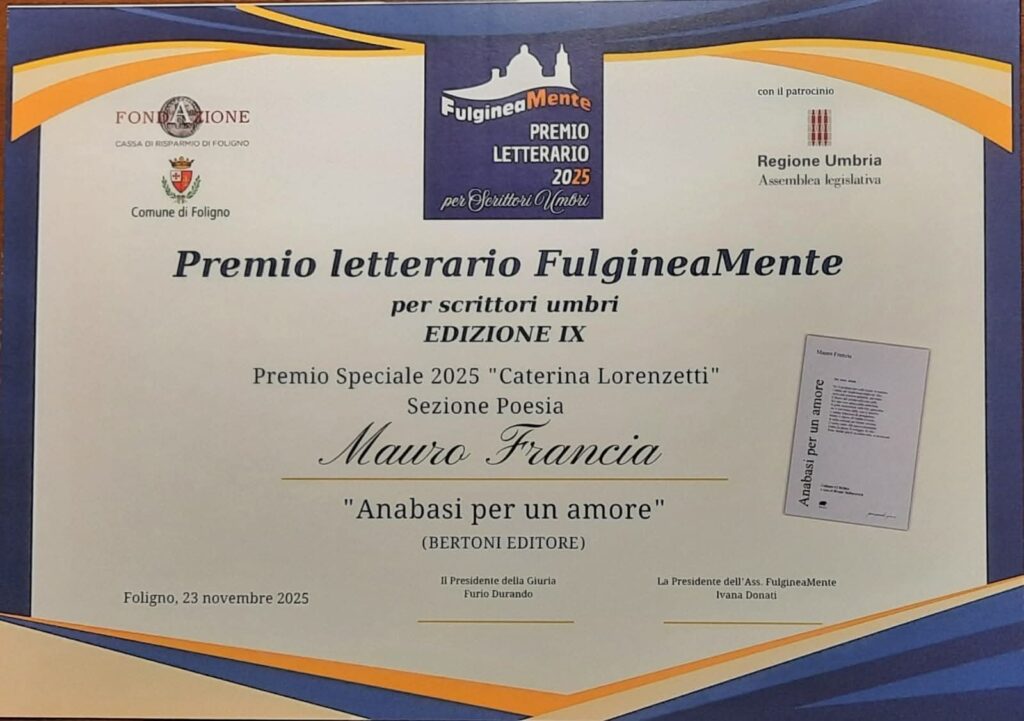 C’è una poesia che non si limita a raccontare l’amore, ma lo attraversa, lo vive e lo restituisce al lettore nella sua forma più autentica e senza tempo. È quella di Mauro Francia, autore umbro che con la sua nuova raccolta, Anabasi per un amore. Ogni amore perso diventa una nuvola, ogni nuvola copre un pezzo di cielo, si conferma tra le voci più sensibili e profonde del panorama poetico contemporaneo.