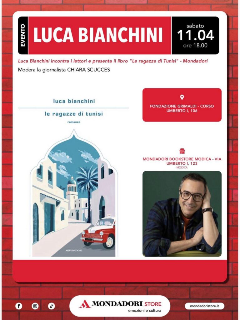 Sabato 11 aprile, sarà Modica ad ospitare, a cura di Mondadori BookStore Modica, Luca Bianchini che presenta con Chiara Scucces, Le ragazze di Tunisi (Mondadori). Bianchini, scrittore, conduttore radiofonico e sceneggiatore italiano, ha esordito nel 2003 con Instant Love, diventando poi autore di numerosi bestseller pubblicati da Mondadori, tra cui Io che amo solo te e La cena di Natale, trasposti in film di successo. Nato e cresciuto a Torino, prima di dedicarsi alla scrittura, ha lavorato come intervistatore telefonico, redattore filatelico e copywriter. È conduttore radiofonico, noto per il programma ‘Colazione da Tiffany’ su Rai Radio 2, format nato in collaborazione con Fiorello e molti dei suoi libri sono ambientati a Torino e Polignano a Mare. E’ noto per il suo stile brillante e per la capacità di raccontare storie con un tocco ironico e leggero. Le ragazze di Tunisi sono pagine tra risate e malinconia, con un pizzico di invenzione e lo stile di Bianchini che racconta la vita di sua madre a Tunisi tra il 1959 e il 1961. Come tanti italiani di origine siciliana, anche i suoi familiari nella prima metà del Novecento hanno cercato l’America in Tunisia, non sempre trovandola. Una storia di emigranti dimenticata ma comune a molti, tra partenze e ritorni, entusiasmi e piccole delusioni. E sono proprio quelle ‘ragazze di Tunisi’ che parlano anche di noi e ci ricordano che certe storie, quando raccontate con leggerezza e cuore, diventano un po’ le nostre