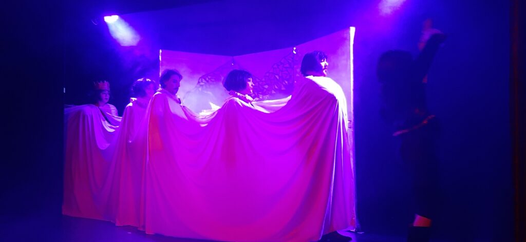 C’è da dire che gli attori hanno rappresentato il loro lavoro mettendoci, oltre alla innegabile passione interpretativa ,anche una grande fatica fisica. Solo una grande energia poteva sostenere tutti quei ricorrenti cambi di scena, movimenti, slanci, recitazione urlata, fremente, vissuta e donata al pubblico con sorprendente intensità.